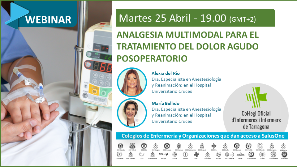 En este nuevo Webinar contaremos con dos anestesistas del Hospital Universitario de Cruces que nos hablaran del manejo del dolor posoperatorio agudo a través de la anestesia multimodal. Para ello nos expondrán el nuevo protocolo puesto en marcha en dicho hospital. Adjunto imagen del webinar con el logo del Colegio.
