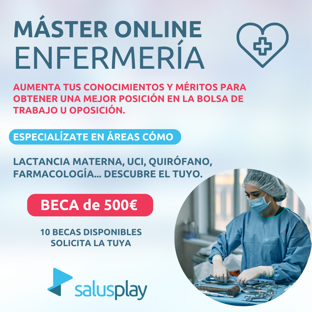 Al ser membre del Col·legi Oficial d’Infermeria de Tarragona, pots reservar una de les 10 beques disponibles de 500€ per realitzar un dels Màsters Online de SalusPlay que comencen el dia 1 de Març: