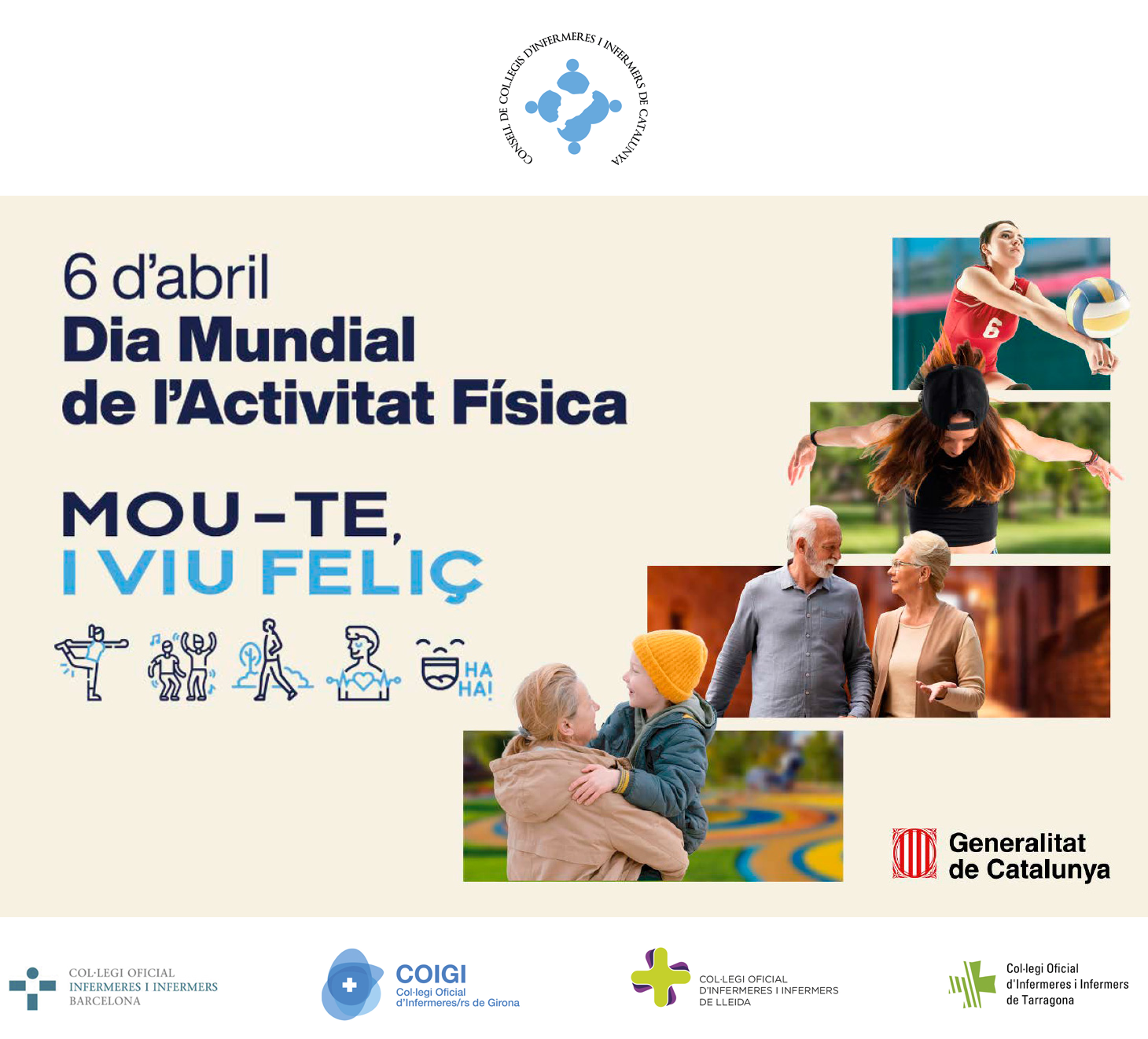 El Dia Mundial de l’Activitat Física 2024 se celebra aquest 6 d’abril sota el lema “Mou-te, i viu feliç“. Una màxima que les infermeres de totes les especialitats incorporen als seus plans terapèutics. La prescripció de l’exercici físic, adaptat a la realitat física i social de les persones ateses, és un actiu per al manteniment i/o restitució de la salut en els àmbits de l’atenció familiar i comunitària, la llevadoria, la pediatria, la salut mental, la geriatria i també en el marc de la salut laboral.