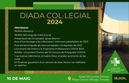 L’acte tindrà lloc divendres 10 de maig a les 18 h a l’Hotel SB Corona de Tortosa,  en el marc del Dia Internacional de les Infermeres, que se celebra cada 12 de maig.