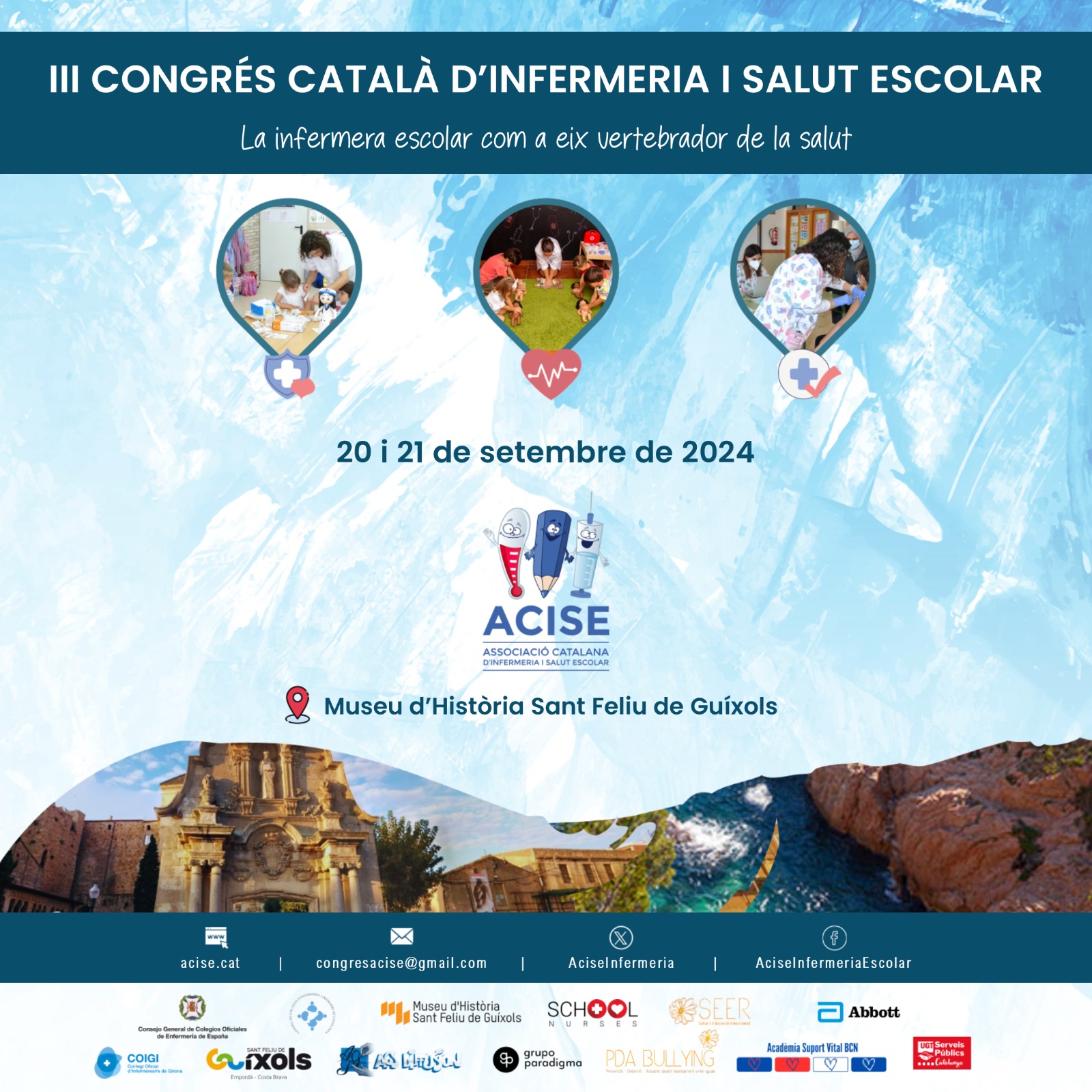 Des de CODITA us volem informar sobre que L’Associació Catalana d’Infermeria i Salut Escolar (ACISE) ha organitzat el III Congrés Català d’Infermeria i Salut Escolar, que tindrà lloc els dies 20 i 21 de setembre del 2024, a l’Espai de Congressos del Monestir de Sant Feliu de Guíxols, ubicat en aquesta emblemàtica i encantadora ciutat de la província de Girona.