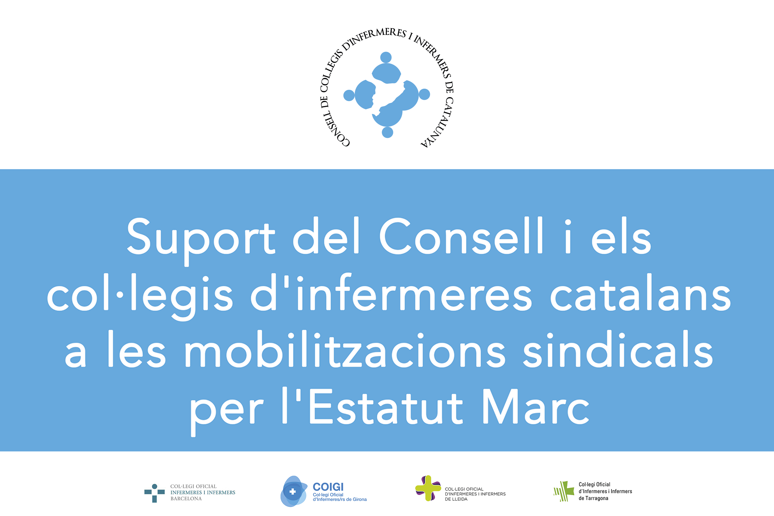 El Consell de Col·legis d’Infermeres i Infermeres de Catalunya (CCIIC) i els quatre col·legis professionals territorials –Barcelona (COIB), Girona (COIGI), Lleida (COILL) i Tarragona (CODITA)– fan públic el seu suport a les concentracions convocades pels Sindicats de l’Àmbit de Negociació amb motiu de la imminent aprovació de la modificació del “Estatuto Marco del personal estatutario de los servicios de salud”.