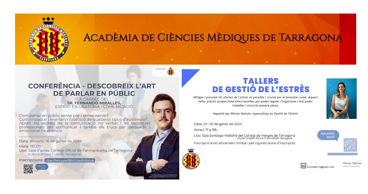Des de l’Acadèmia de les Ciències Mèdiques i la Salut de Tarragona (ACMT) s’ha elaborat un programa formatiu pel 2024 pensat per que tots els professionals relacionats amb les Ciències de la Salut de la nostra província hi puguin participar.